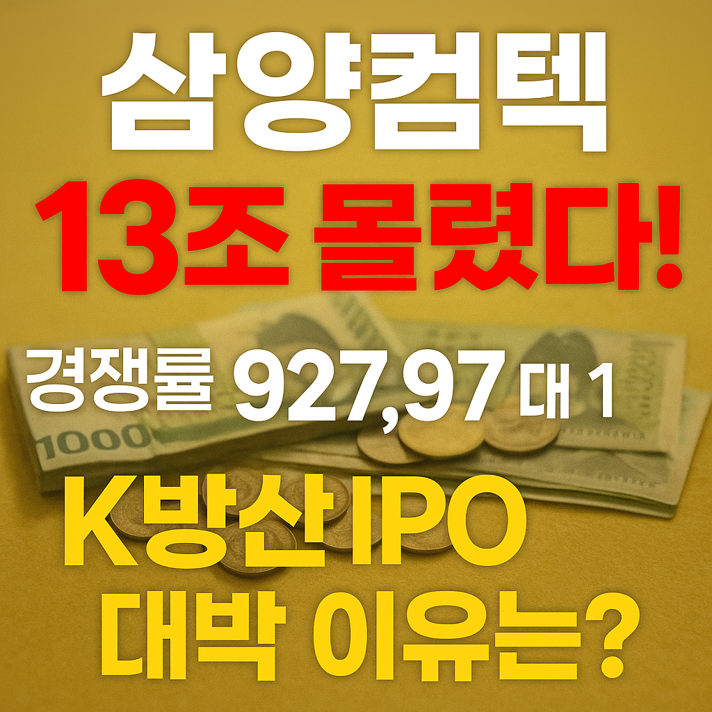‘K-방산’ 대표주 삼양컴텍이 공모주 청약에서 기록적인 관심을 끌며, 투자 시장에 강한 인상을 남겼다. 일반 청약에서 경쟁률 927.97대 1, 청약 증거금 약 13조 원이라는 어마어마한 수치를 기록한 것이다.
